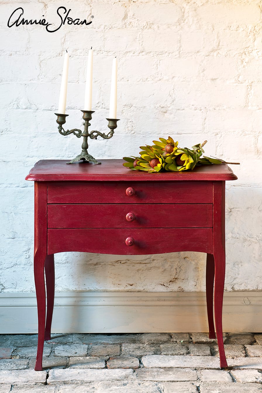 Burgundy ist ein tiefes, warmes Rot mit Anklängen von dunklen Kirschen. Diese Chalk Paint™ dekorative Farbe von Annie Sloan hat ihre Wurzeln in der Antike und ist stark von neoklassischer Gestaltung geprägt.