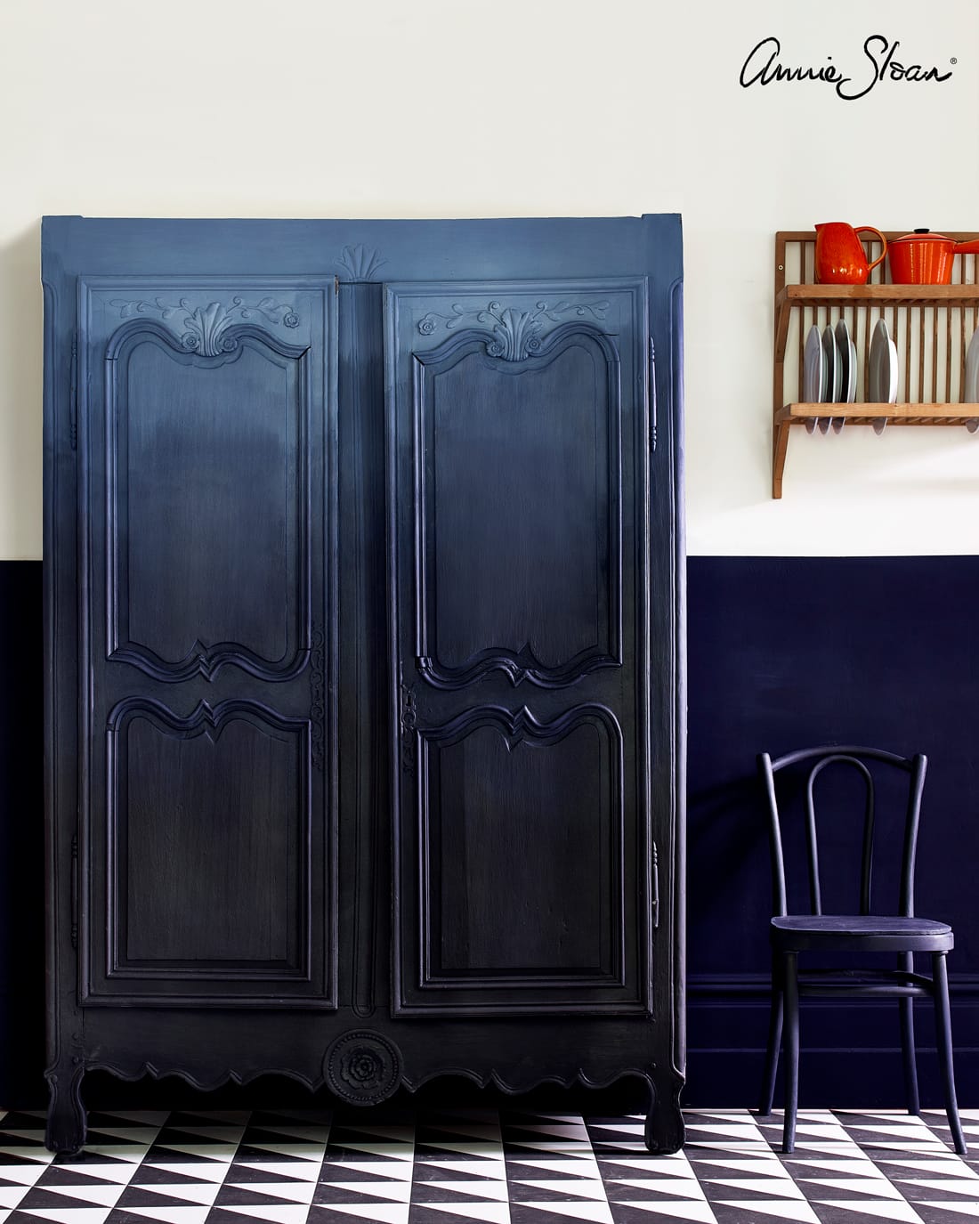 Oxford Navy ist ein intensives, tintenartiges Marineblau mit traditioneller Ausstrahlung. Diese Chalk Paint™ dekorative Farbe von Annie Sloan erinnert an akademische Insignien, Füllfederhalter und klassisches Indigo.