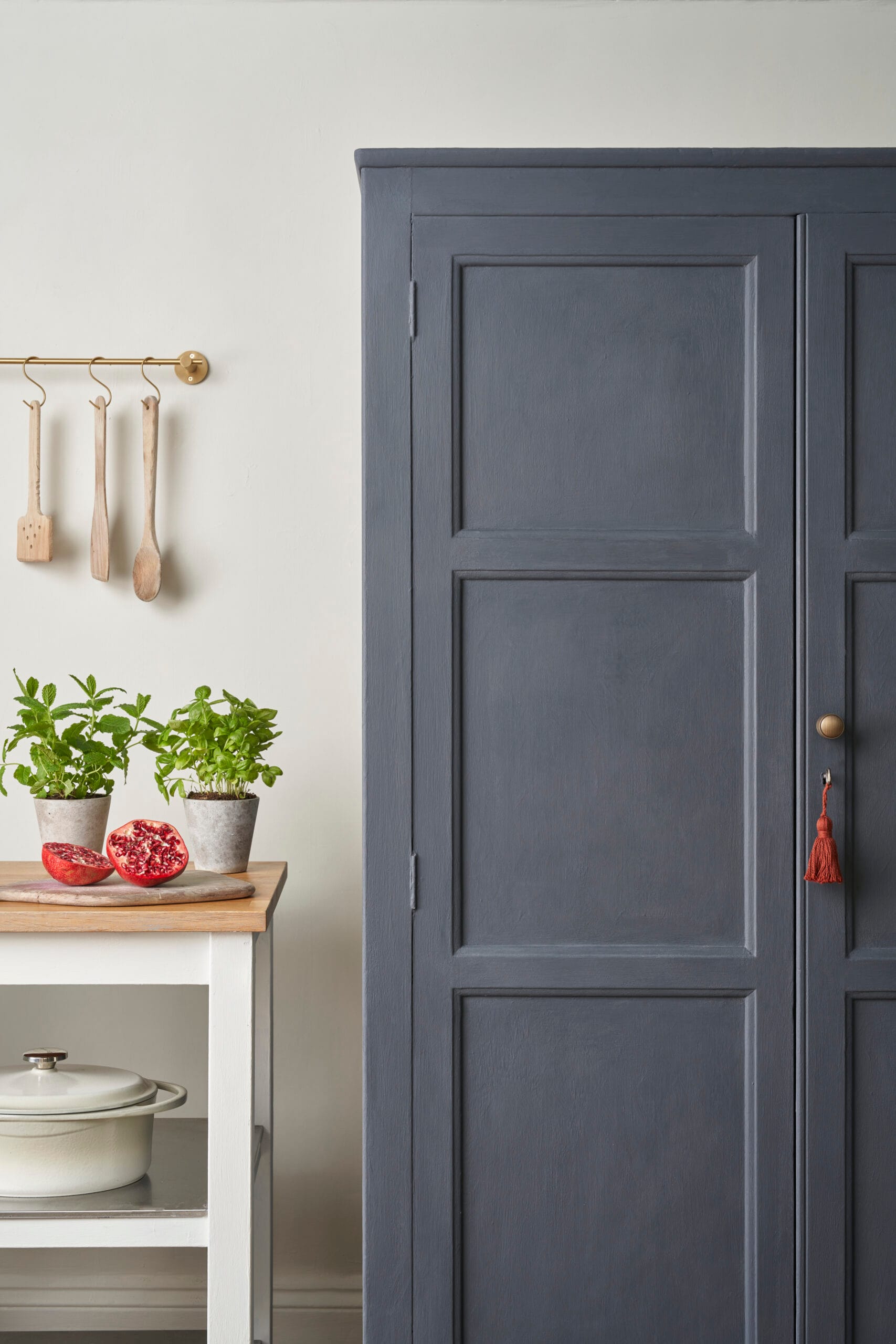 Als Chalk Paint™ Farbe harmoniert er wunderbar mit hellen Neutrals und Pastelltönen. Auch kräftigere Farben werden durch Whistler Grey elegant ausbalanciert.